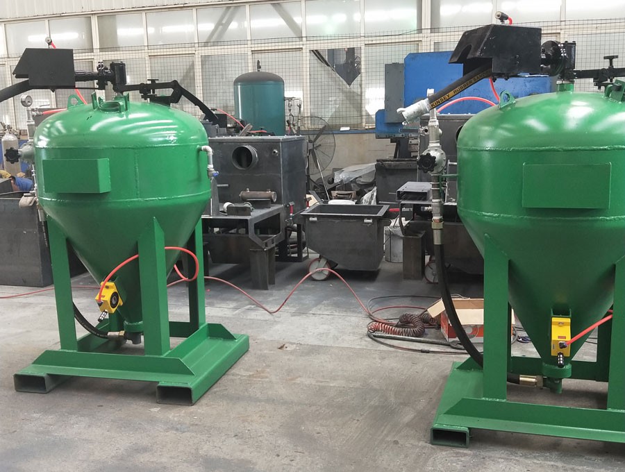 無塵噴砂機(jī)(濕式噴砂罐)其工作原理是利用高速砂流的沖擊作用清理和粗化基體表面的過程。采用壓縮空氣為動(dòng)力,在噴砂罐中形成一種水和砂的混合體,再以形成高速噴射束將噴料(推薦使用玻璃砂)高速噴射到需要處理的工件表面,由于磨料對工件表面的沖擊和切削作用,使工件的表面附著物得到清除,同時(shí)會(huì)使清潔后的工件相對粗糙,增加了它和涂層之間的附著力,延長了涂膜的耐久性,也有利于涂料的流平和裝飾。