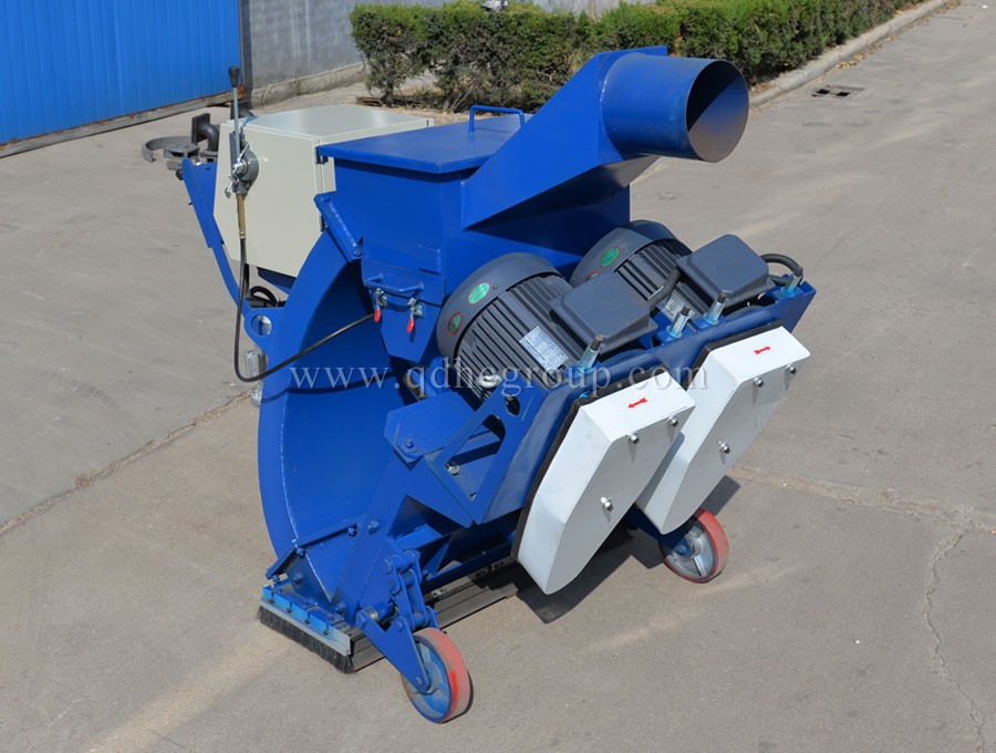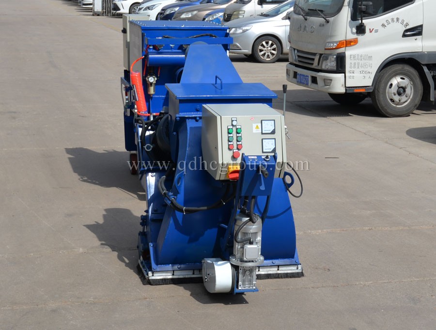 標志線清理移動路面拋丸機是利用電機驅(qū)動的拋丸輪在高速旋轉(zhuǎn)過程中產(chǎn)生離心力和風力,一定顆粒度的彈丸流入進丸管 時(可以控制彈丸的流量)便被加速帶入高速回轉(zhuǎn)的分丸輪中,在離心力的作用下,彈丸由分丸輪窗口拋出進入定向套,再經(jīng)由定向套窗口(控制丸料的拋打方向)拋出,由高速回轉(zhuǎn)的葉片拾起,并沿葉片之長度方向不斷加速運動直至拋出,拋出的彈丸形成一定的扇型流束,沖擊工作平面起著清理強化的作用。然后彈丸和灰塵、雜質(zhì)一起經(jīng)過反彈室來到儲料斗的上方。大功率的除塵器通過儲料斗上方的分離裝置將丸料和灰塵分離,丸料進入儲料斗繼續(xù)循環(huán)使用,灰塵則通過連接管進入除塵器。當灰塵進入除塵器后,通過濾芯的分離,停留在儲灰斗中和濾芯的表面。自動反吹除塵器可以通過壓縮機提供的反吹空氣自動間隔清理每一個濾芯。后在機器內(nèi)部通過配套吸塵器的氣流清洗,將丸料和清理下來的雜質(zhì)分別回收,并且使丸料可以再次利用。拋丸機配有除塵器,可做到無塵無污染施工,既提高了效率,又保護環(huán)境。